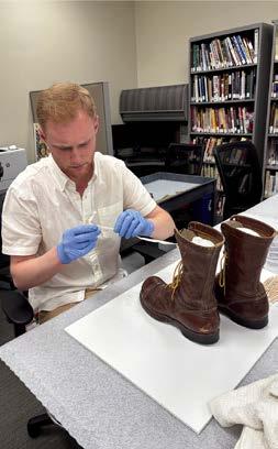 In addition to the travelling portion of Rocco’s exhibit, museum staff also added items to represent the thousands of Wisconsin veterans involved in this fateful event. Museum staff worked hard to prepare Wisconsin Veterans Museum collections for display. Before pieces can go out on exhibit, collections staff pulled the artifacts from their storage locations, completed condition reports to determine their stability, cleaned and stabilized pieces that required it, and then finally installed the items in display cases within the changing exhibit gallery.