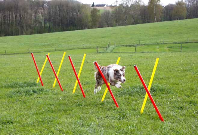 En 3 parties avec un anneau , une barre de saut et des piquets pour slalom Réf. 62533.