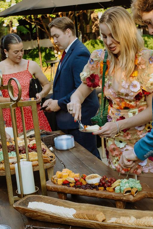 Cocktail Hour and buffet style dinner, all while being served by professional ABC licensed and trained service staff