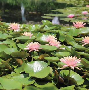 the pond by Rat’s Restaurant. “We also have roses and perennials in bloom earlier in June, which can be found all around the grounds, including the rose arbor by Rat’s Restaurant, scalloped berms, Olympia Hill by the Welcome Center, and behind the Museum Building,” she notes.
