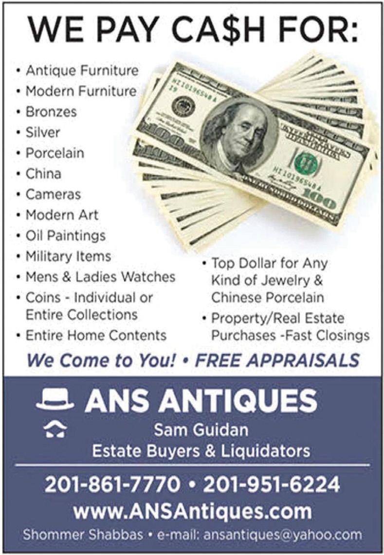 BUYING: Antiques, paintings, Oriental rugs, coins, clocks, furniture, old toys, military, books, cameras, silver, costume & fine jewelry. Guitars & musical instruments. I buy single items to entire estates. Free appraisals. (609) 306-0613. 06-28
