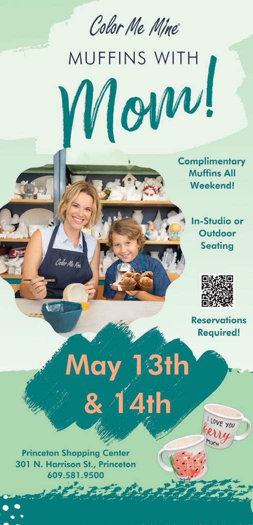 3 • TOWN TOPICS, PRINCETON, N.J., WEDNESDAY, MAY 3, 2023 Flowers & Gifts 305 Witherspoon Street Princeton, NJ 08542 (609) 751-9800 Pick up only. Discount will be applied at the time of pick up. 10% OFF www.vasefulprinceton.com Vaseful, a Community Options Enterprise, is a unique floral business which provides employment for people with disabilities in an integrated setting. Shop with us and support people with disabilities. Day Mother’s Day Sunday, May 14, 2023 Flowers & Gifts 305 Witherspoon Street Princeton, NJ 08542 (609) 751-9800 Pick up only. Discount will be applied at the time of pick up. 10% OFF www.vasefulprinceton.com Vaseful, a Community Options Enterprise, Mother’s Day Sunday, May 14, 2023 305 Princeton, Pick up only. 10% www.vasefulprinceton.com Vaseful, is a unique Mother’s Sunday, Pick up only. 10% Mother’s Sunday, 10% OFF 305 Witherspoon Street Princeton, NJ 08542 • (609) 751-9800 Vaseful, a Community Options Enterprise, is a unique floral business which provides employment for people with disabilities in an integrated setting. Shop with us and support people with disabilities. Town Topics Mother’s Day 315 Cranbury Road, Princeton Junction 609-275-6060 | 800-999-4459 poil Mom this year with a surprise delivery. Let Wildflowers of Princeton Junction create a unique arrangement and let her know how special and cherished she truly is. S 22 Witherspoon Street, Princeton 609.921.1569 HOURS: Monday - Saturday 8 a.m. - 7:30 p.m. Sunday 9 a.m. - 4 p.m. Surprise Mom with great food from Olives! Brunch favorites, gourmet dinners to go… and our famous baked goods! View our full menu online at www.olivesprinceton.com Good Food….Always Monday - Saturday 7:30 am - 7:30 pm Sunday 8:30 am - 4 pm