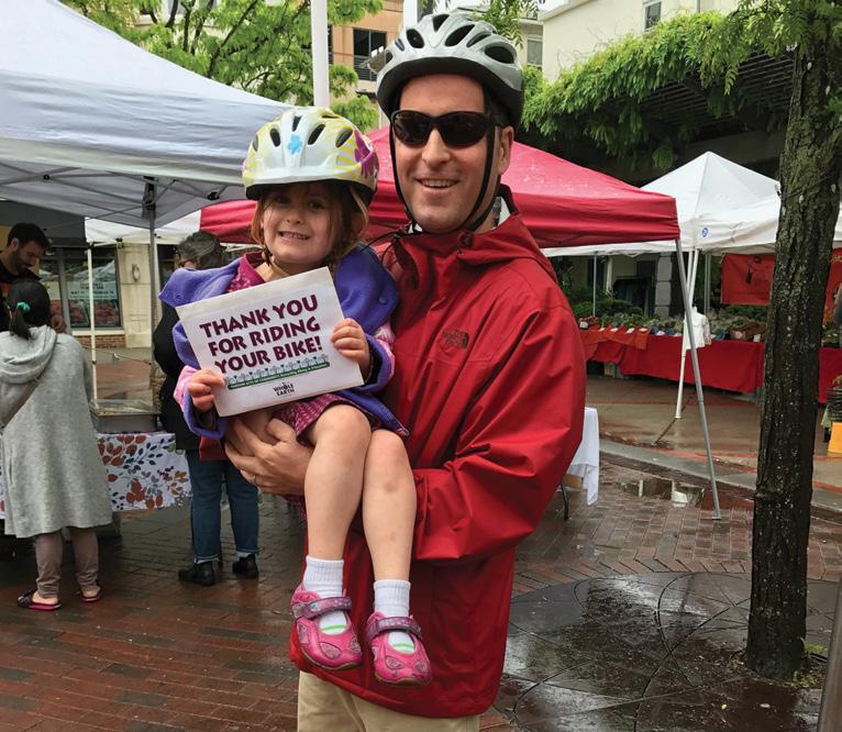When the program began, McManus stood on a corner and stopped cyclists as they rode by. “That was not necessarily a good thing to do,” she said. “It got a little crazy. Now, I wander up and down, say, Witherspoon Street, hitting the bike racks. Or I’ll do the Farmers Market, opening day of the [Community] pool, and other iconic May events.”