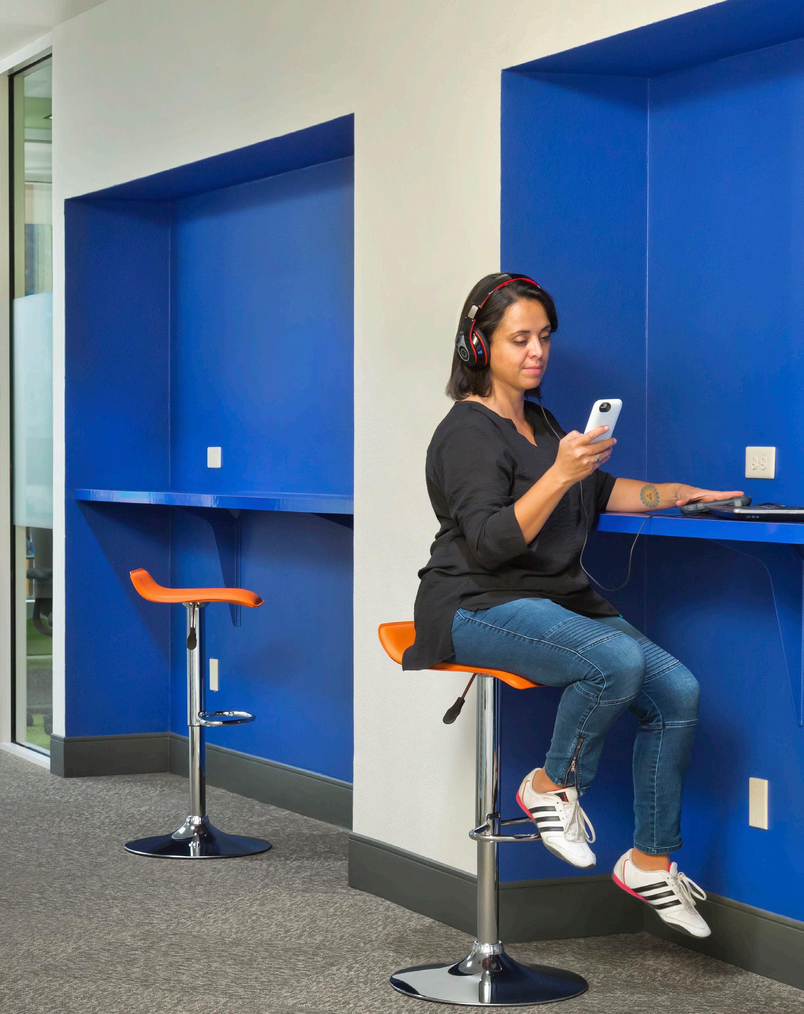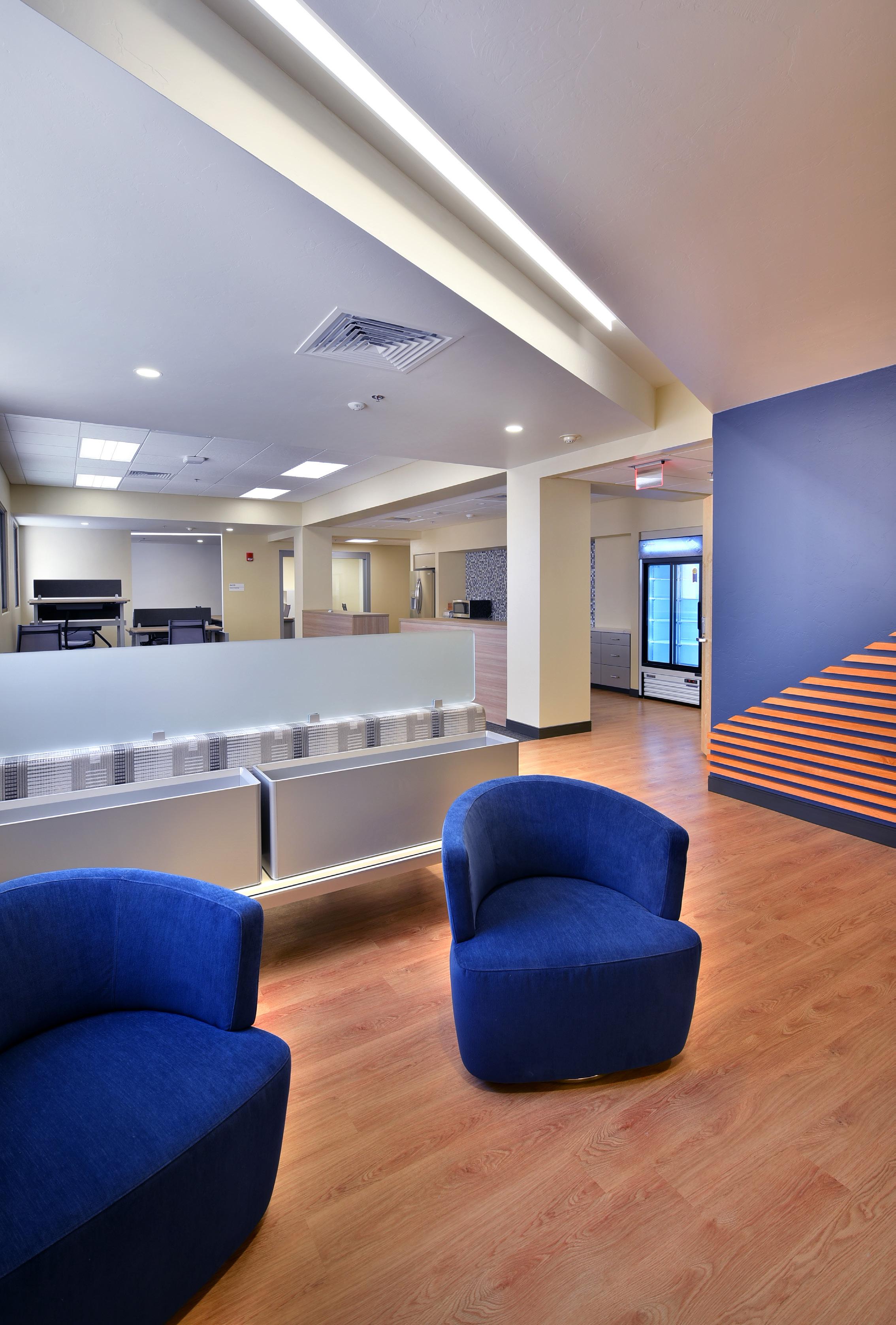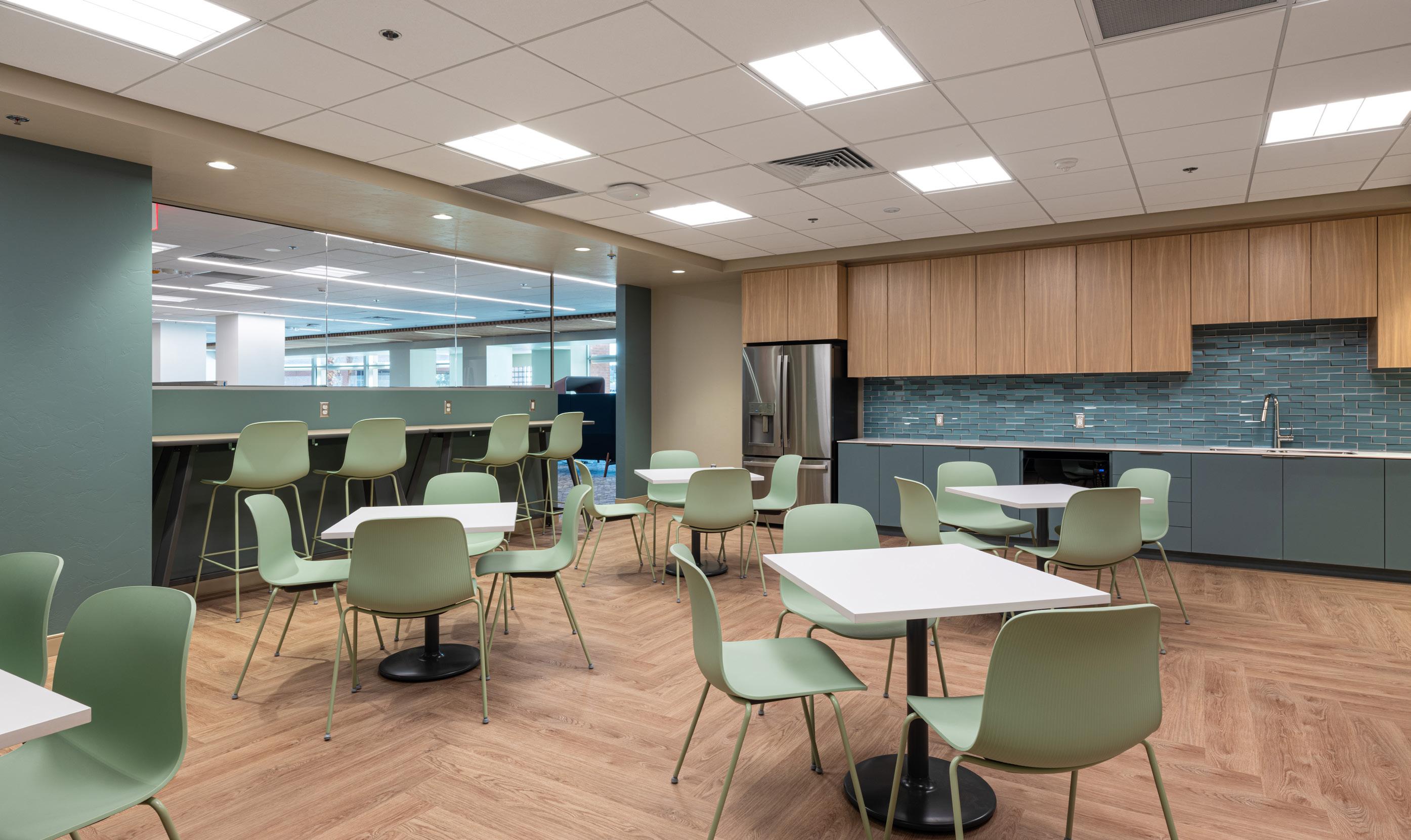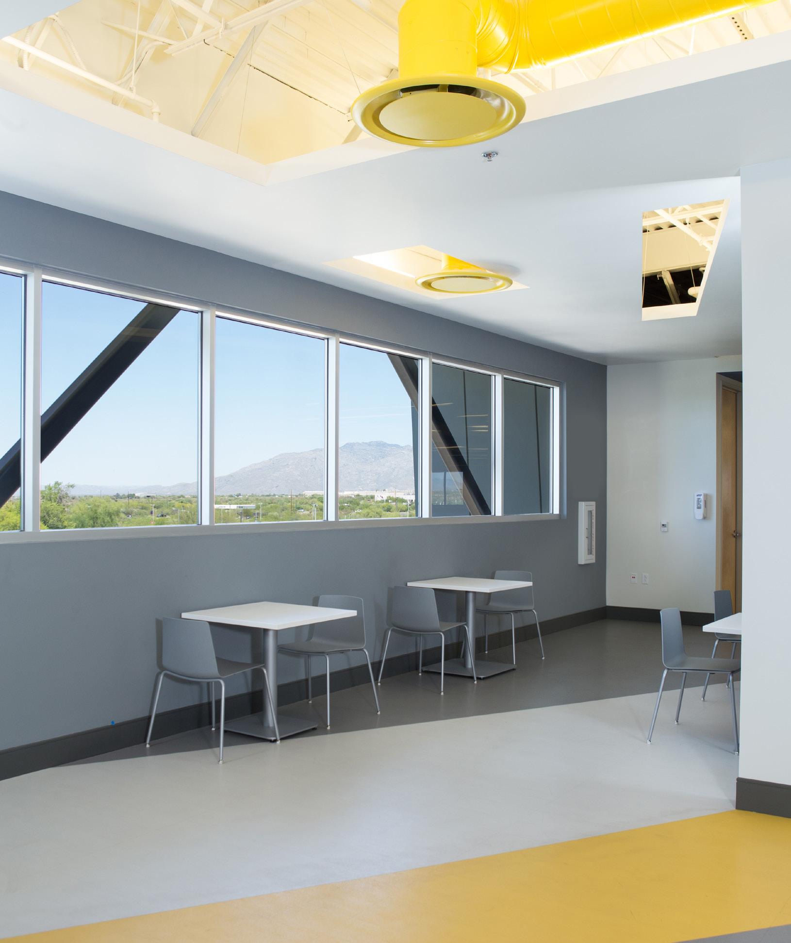 Within Studio was engaged to design the AAA Call Center in Tucson with a focus on visual wellness, spatial clarity, and desert-inspired vibrancy. The interiors were crafted to offer moments of rest and renewal, balancing expansive views with energizing color palettes that keep employees alert but never rushed. Natural light and warm tones echo the surrounding Sonoran landscape, bringing the brightness of the desert indoors. The result is a workplace that supports focus, calm, and connection. Every glance finds something grounding, and every space invites ease.