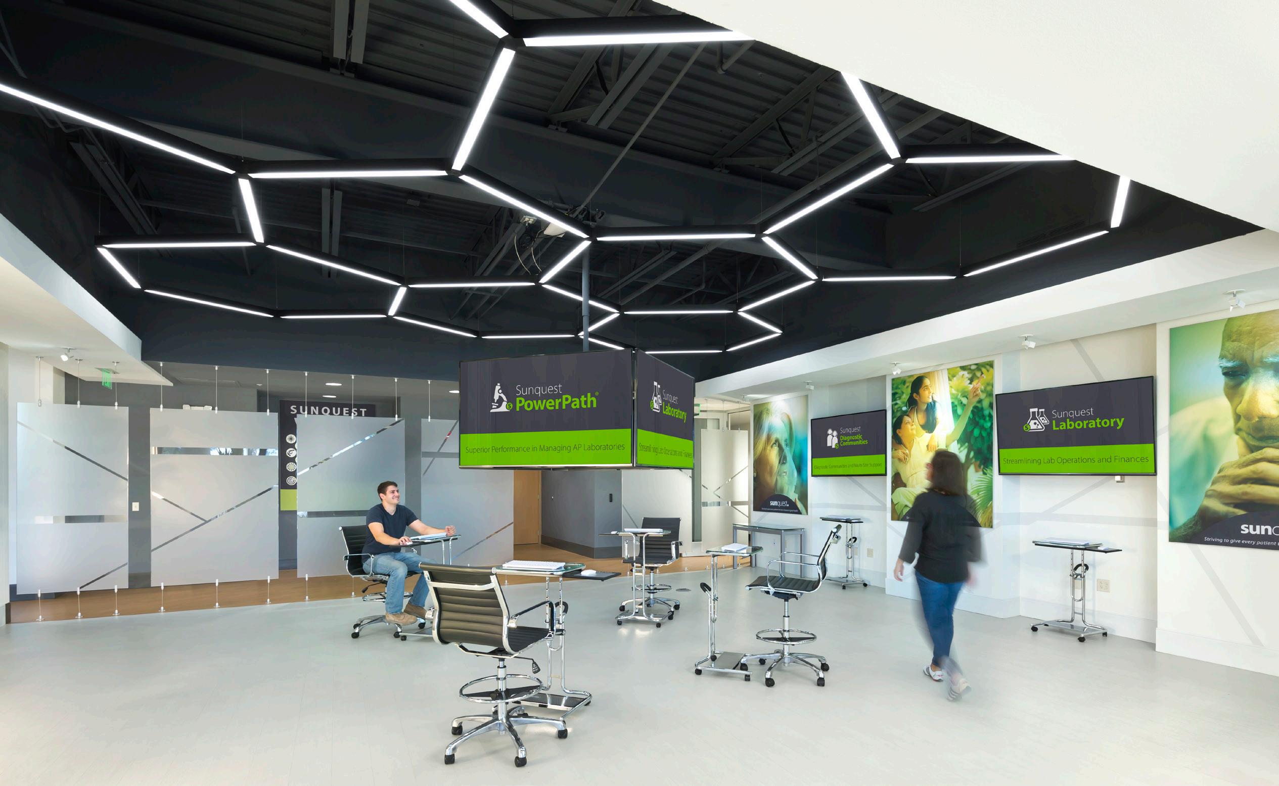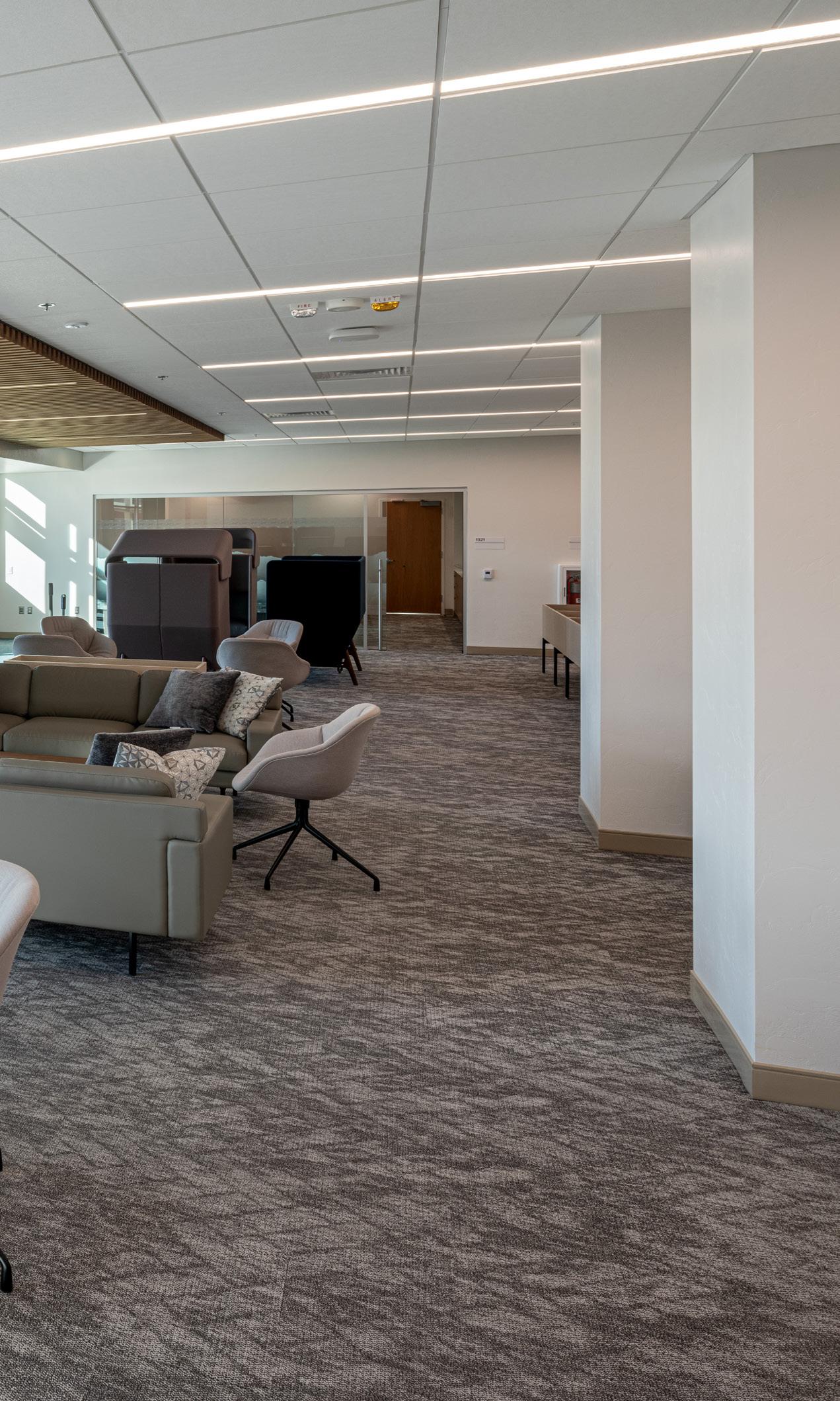 Within Studio designed the new global headquarters for Sunquest Information Systems, a diagnostic informatics company with deep roots in Tucson and a mission to make healthcare smarter and patients safer. Located in the scenic Catalina Foothills, the 83,000-squarefoot building reflects a cultural shift toward agility, innovation, and employee empowerment. Within transformed the former Muscular Dystrophy Association headquarters into a dynamic, light-filled workplace complete with flexible work zones, “team” rooms, wellness amenities, and the immersive Lab of the Future. The design removes physical barriers, fosters serendipitous collaboration, and celebrates Sunquest’s global impact through a distinctly local lens.
