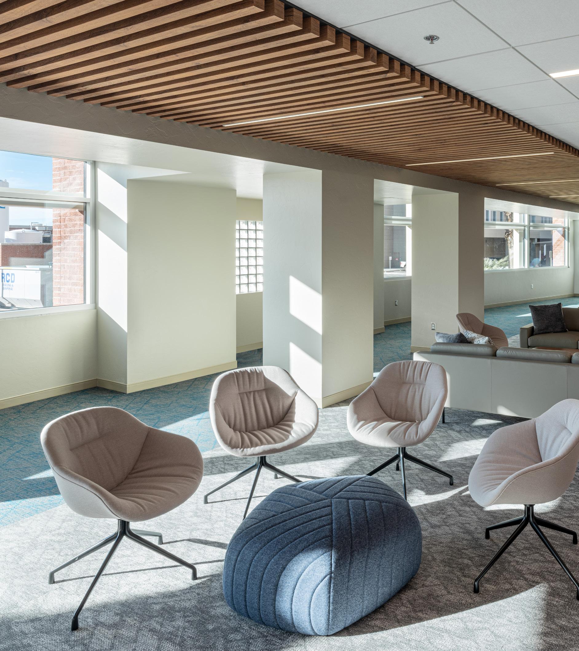 Within Studio was hired to redesign floors 4 through 8 of Building 201 at the University of Arizona Health Sciences Center, transforming a complex multiuser environment into a unified, futurefacing workplace. Each floor served a distinct group with unique needs, from research teams to administrative staff, so we began with deep listening, conducting interviews to understand their goals, workflows, and aspirations. Our design response centered on a cohesive palette of materials and finishes that tie the building together while allowing each floor to express its own identity. The result is a layered, intuitive environment that supports collaboration, clarity, and the advancement of health sciences in Arizona.