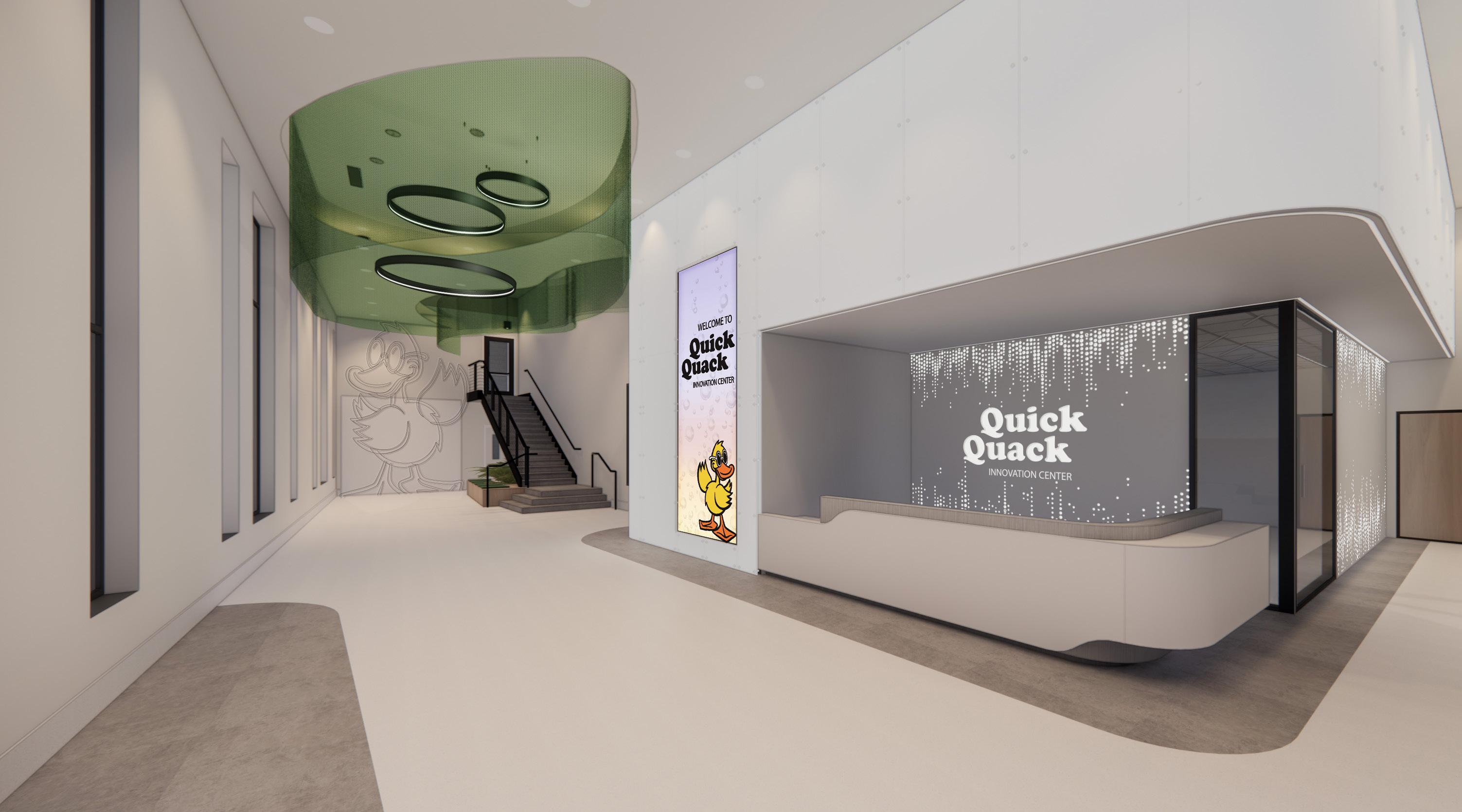 Our design direction channels Quick Quack’s bold, and unapologetically clean introducing elevated materials, branded moments, and immersive storytelling across both interior and exterior touchpoints. From duck-yellow accents to dynamic wayfinding, every detail is crafted to energize collaboration, celebrate culture, and redefine what a workplace can feel like.