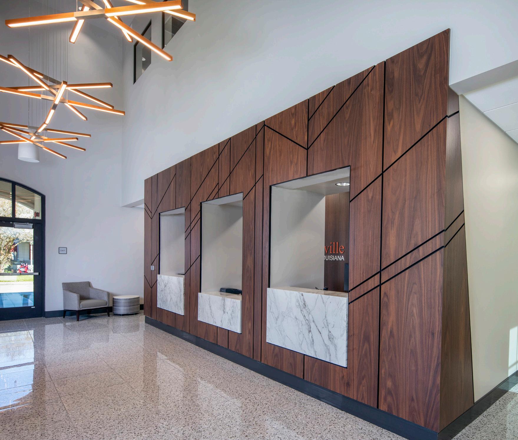 Our chosen palette; Redefining Community, draws from agricultural heritage and earth-minded serenity, offering a comforting yet elevated experience for citizens and staff. Inspired by seasonal cycles and natural landscapes, the interiors feature richly subtle hues of sea, sand, forest, and sky. Symbolic “Y” shapes and angles appear throughout the design, an homage to the sugar cane fields, the region’s agricultural roots, and the very name of Youngsville.