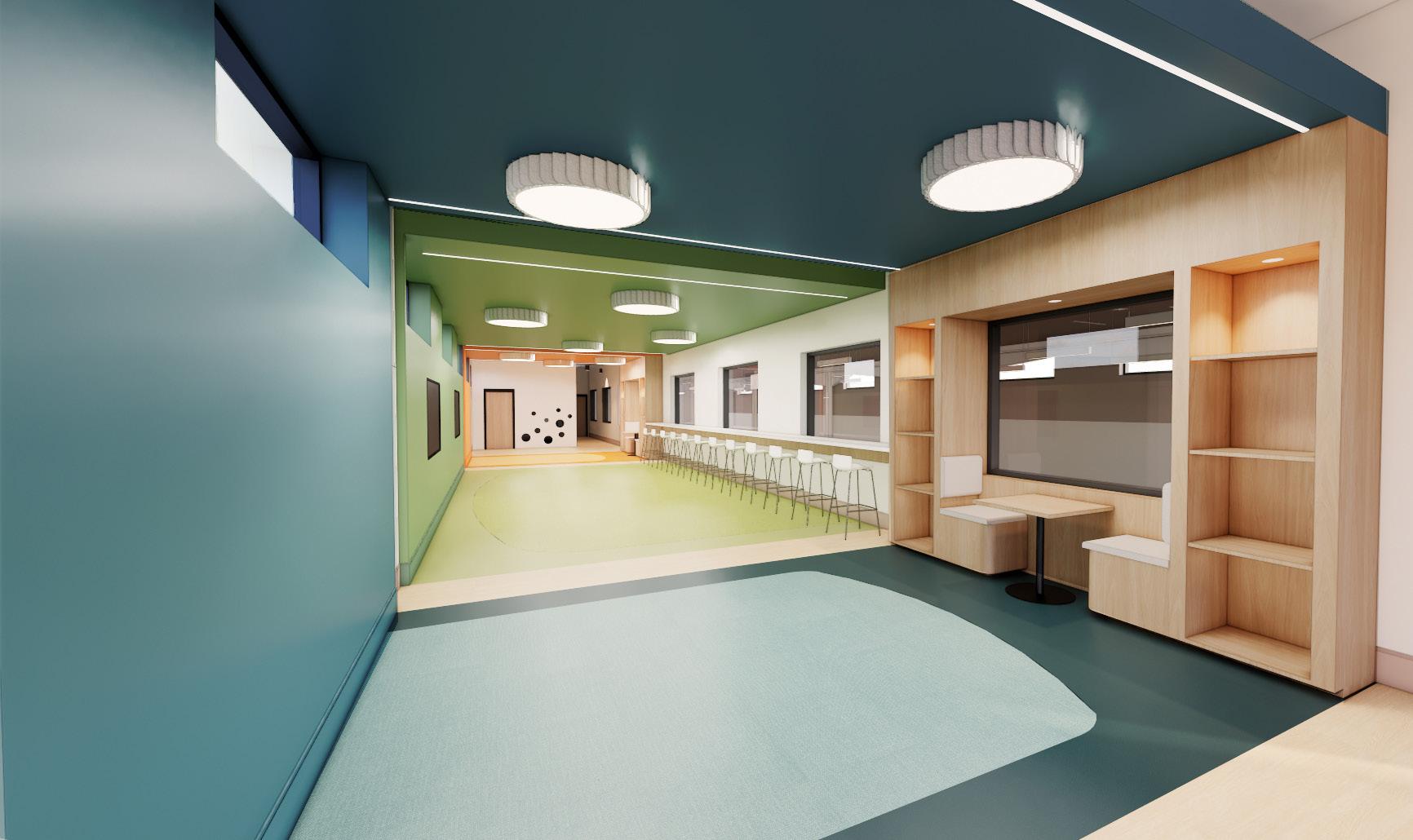 Within Studio was engaged to design the district offices for ALA Leadership Academy, envisioning a headquarters that reflects the organization’s commitment to growth, connection, and well-being. Though unbuilt, the concept centered on a soft blue-green palette, symbolizing renewal, clarity, and optimism, balanced by warm neutrals and natural textures.