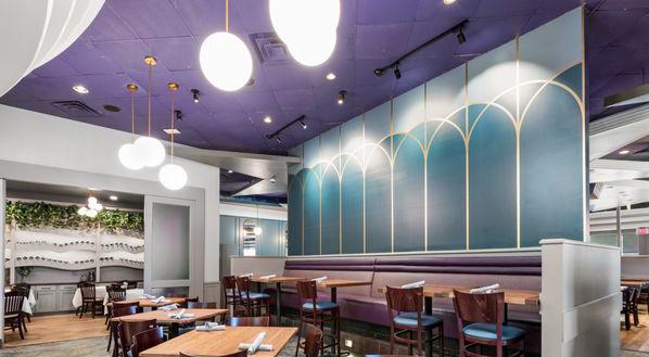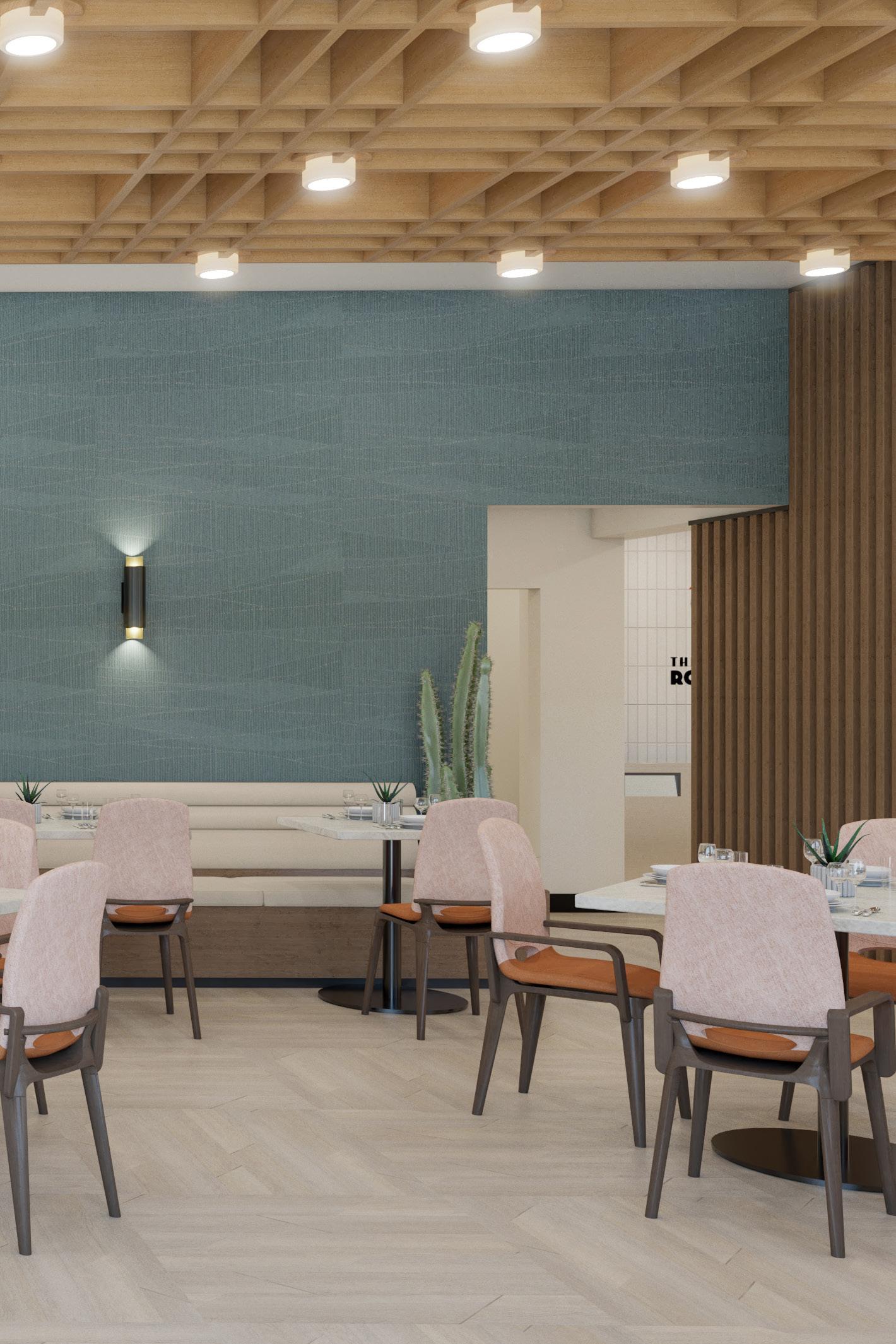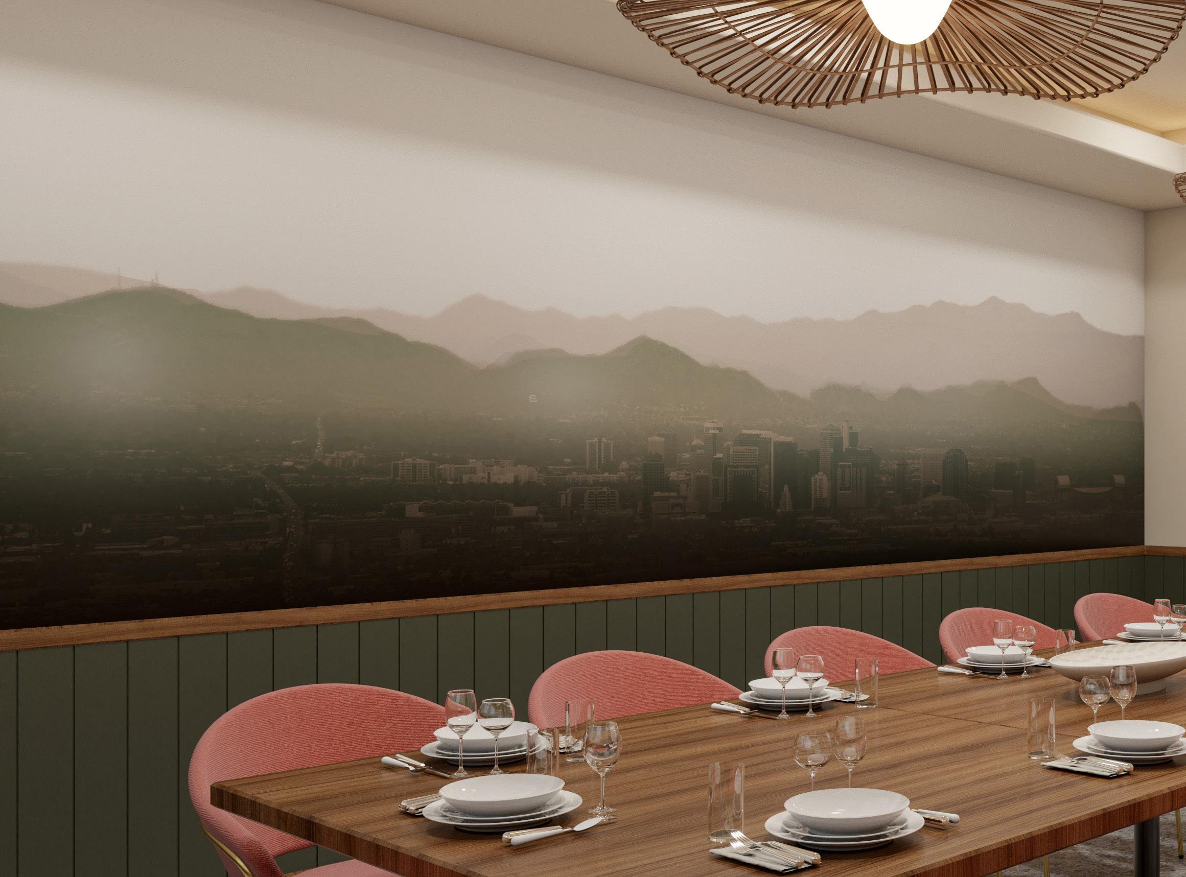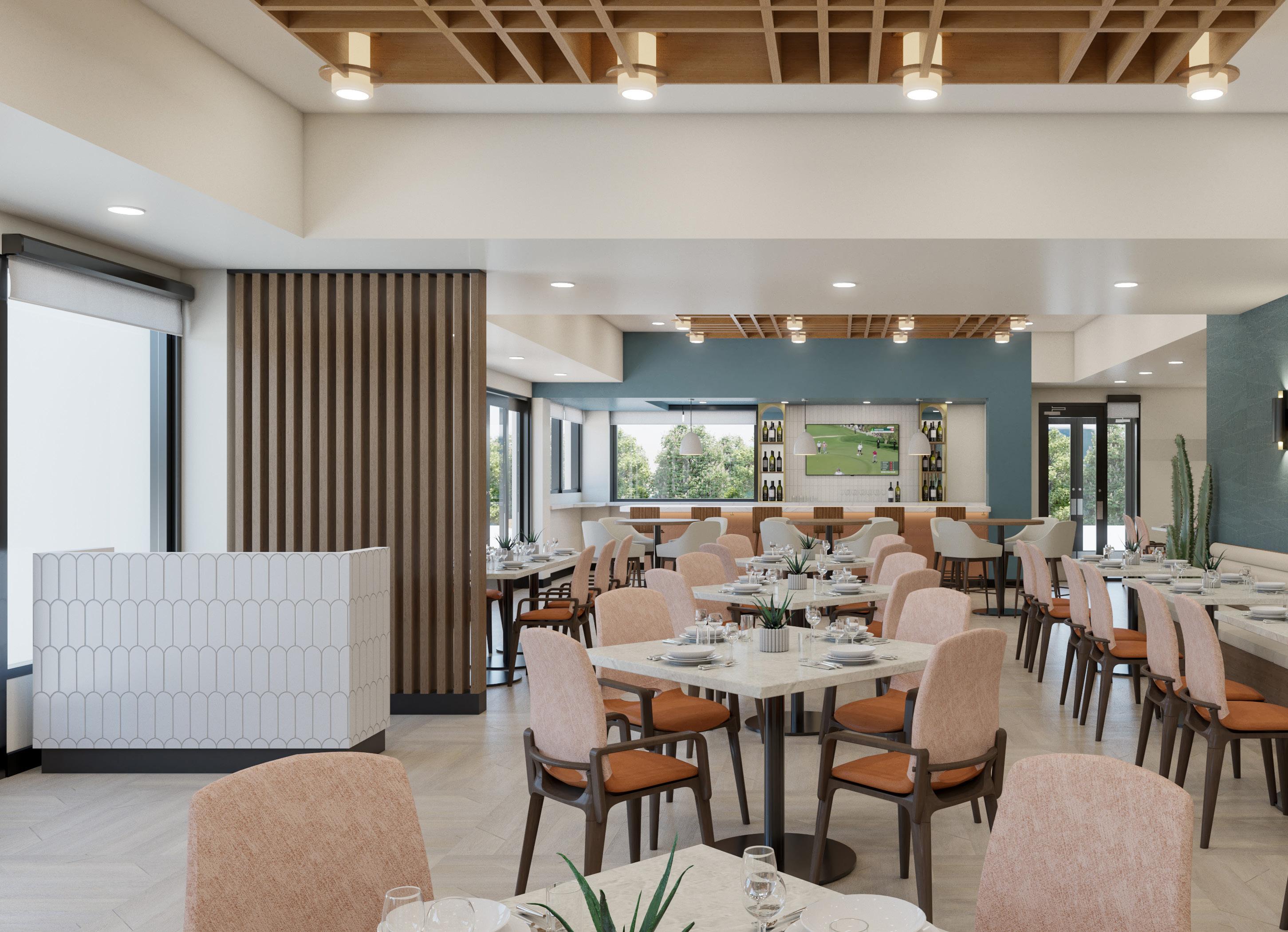 Inspired by bright desert mornings and citrus-infused palettes, the design celebrates rejuvenation, connection, and fresh ingredients. Natural light, warm woods, and pops of green create a welcoming flow from dining room to pizza bar, where a wood-fired oven anchors the space in comfort and craft.