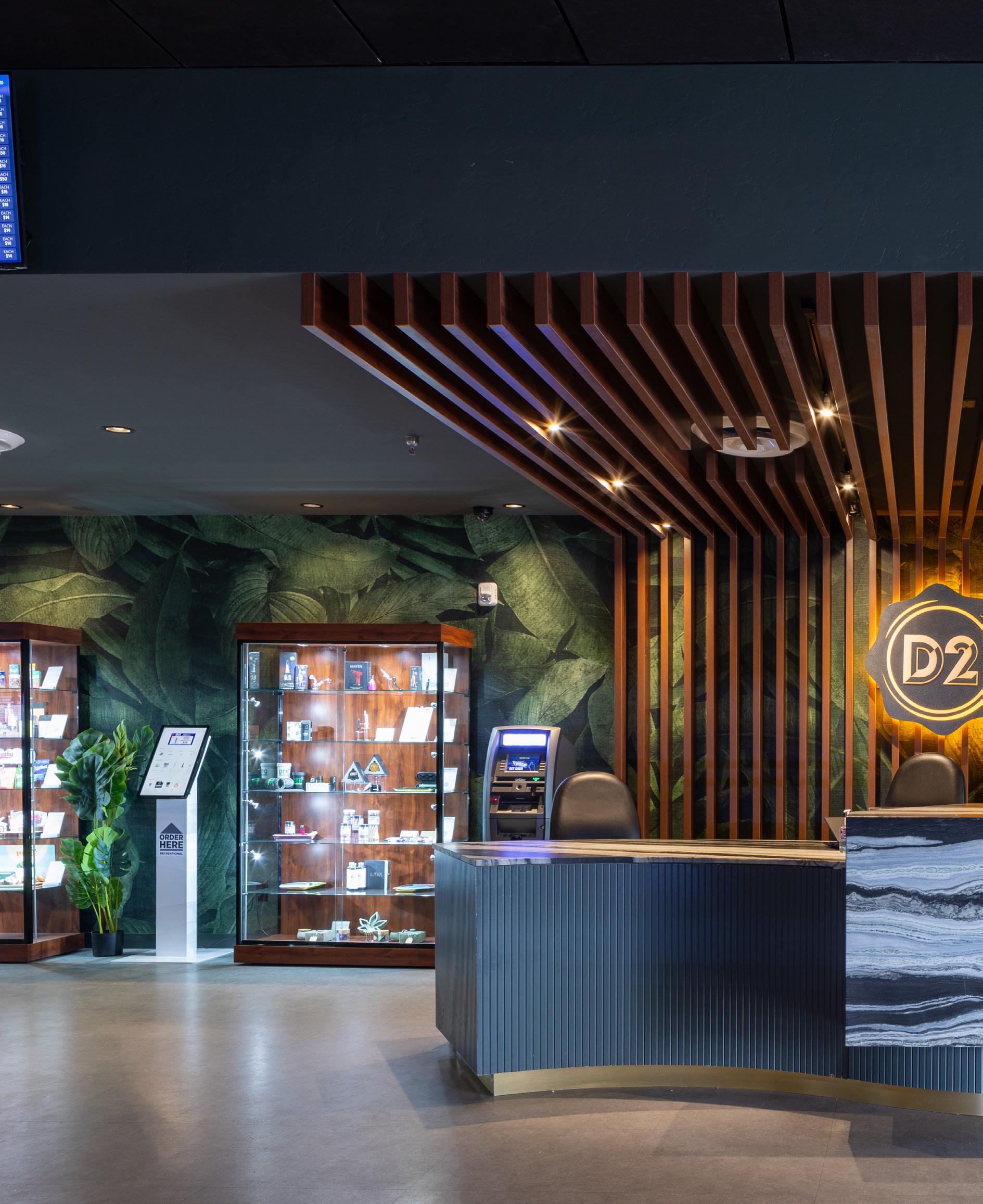 High-tech and cannabis-forward, D2 blends moody elegance with biophilic flow, lush greens, ambient lighting, and curated textures guide guests through an award-winning experience.