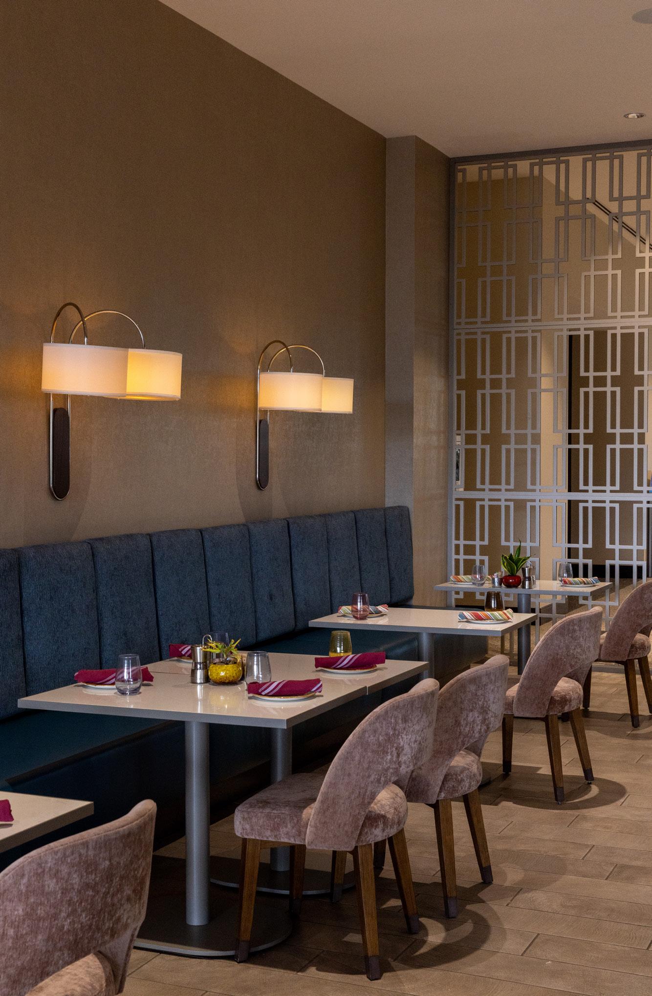 Horizontal lines and soft curves echo the rhythm of the landscape, while thoughtful branding and biophilic touches turn every meal into a moment of retreat.