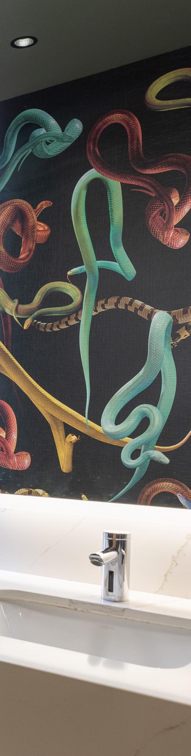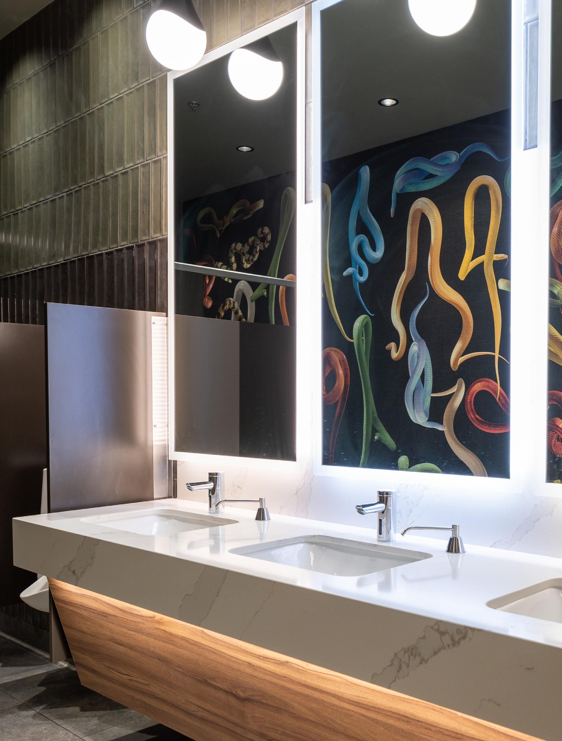 Within Studio designed a custom wallcovering, for the restrooms, as a legacy to Al Copeland’s love of food, family, and the Louisiana culture.