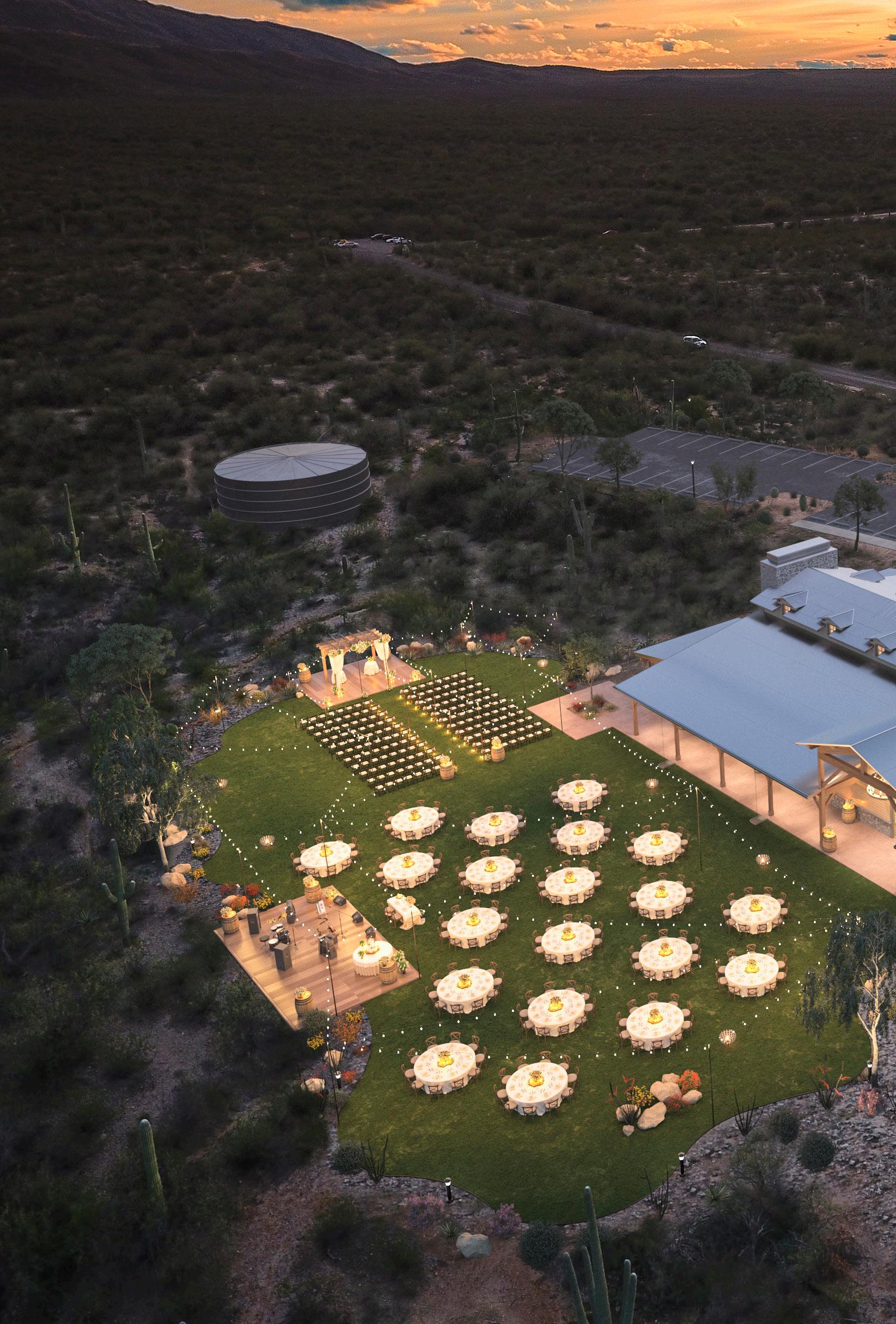 Located at the historic Tanque Verde Guest Ranch, The Barn is a 12,400 square foot venue set within 640 acres at the edge of Saguaro National Park East. The interior design blends the rugged character of the Rincon Mountains with a contemporary approach suited for large gatherings.
