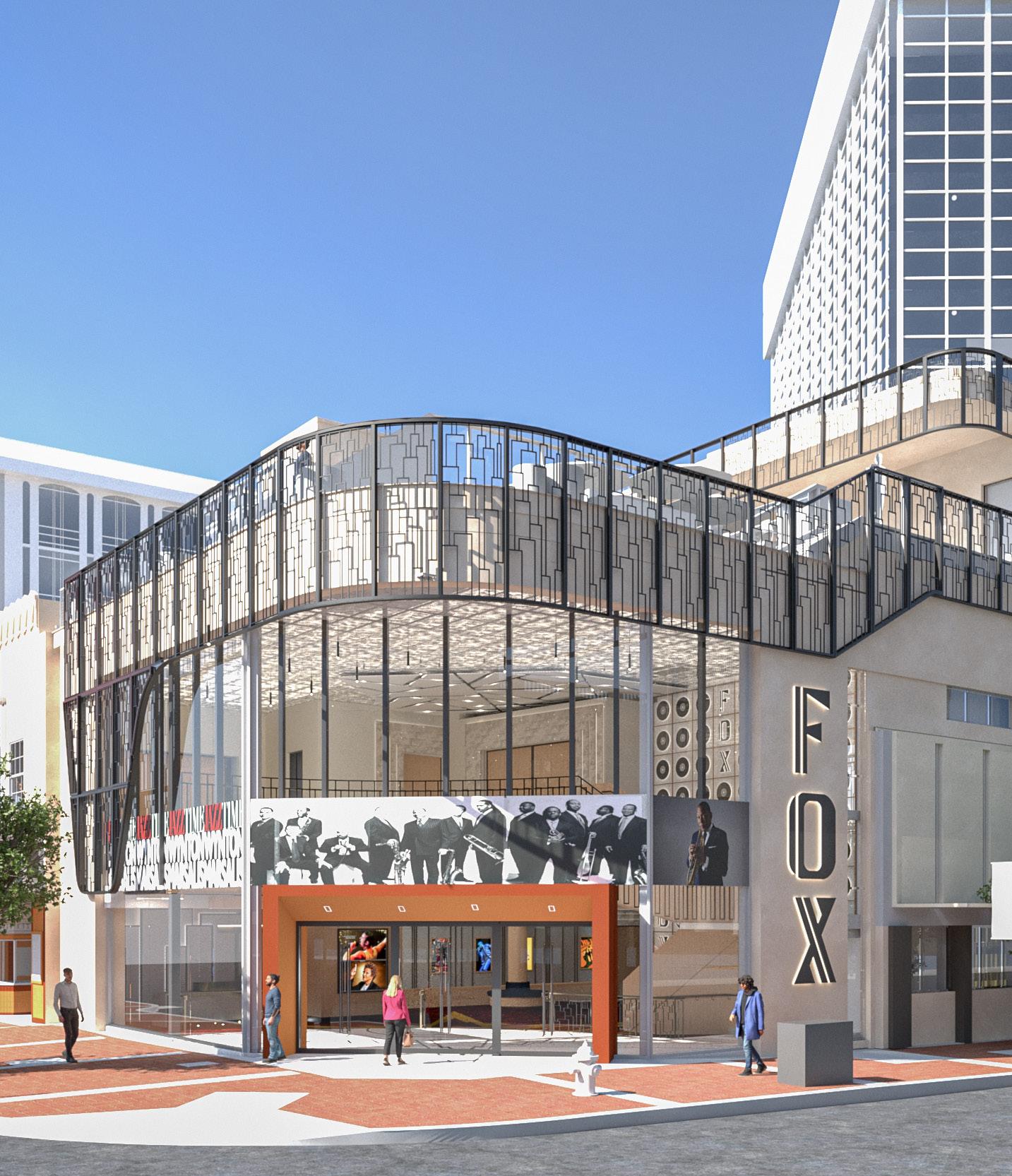 Slated for completion in 2030, the expansion will introduce a new lobby, event space, performing arts center, and rooftop bar; while preserving the soul of the historic Fox.