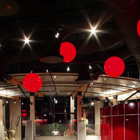 Bold graphic elements, exposed structure, and signature red globe lighting create an energetic, recognizable atmosphere across markets. Interior and exterior dining areas flow together, encouraging movement, visibility, and social interaction.