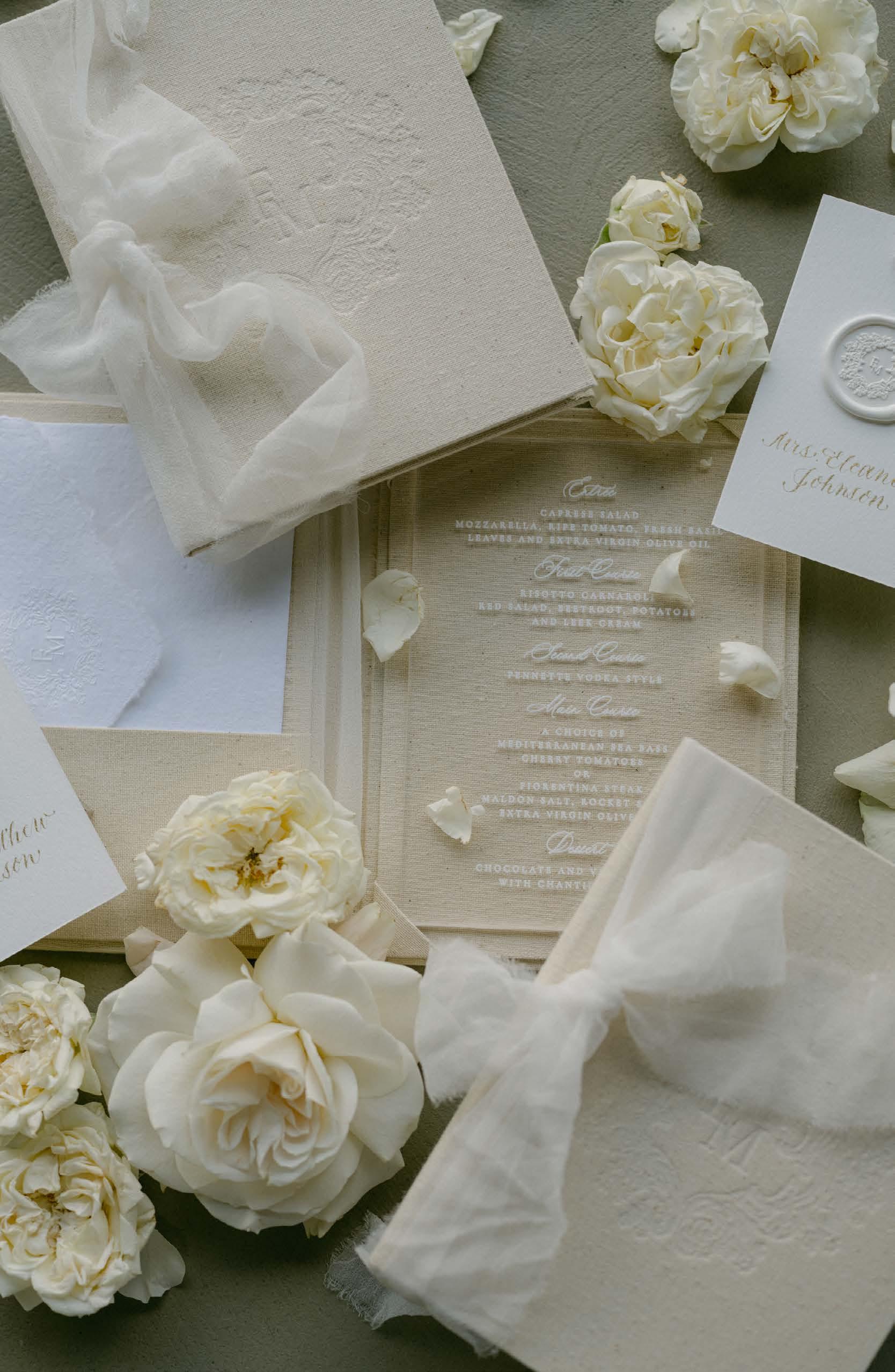 Our custom collections begin with a bespoke style guide based on the vision for your wedding stationery. Once we have established your brand, we begin to build out the concepts for your save the dates, and later your invitations, based on the investment you are comfortable with. Once you have worked through your wedding design, we will then conceptualize the day of details that are in alignment with each vignette.