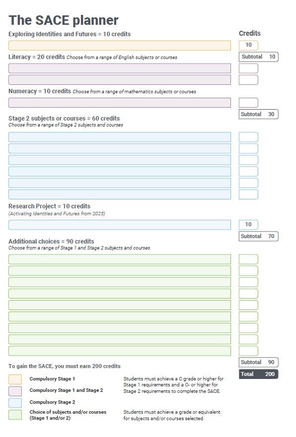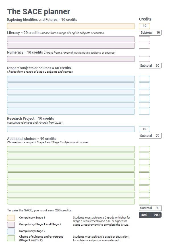 • plan their SACE and look at different subject, or subject and course, combinations;