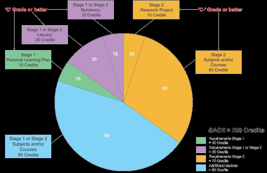 Each subject or course successfully completed earns ‘credits’ towards the SACE, with a minimum of 200 credits required for students to gain the certificate.