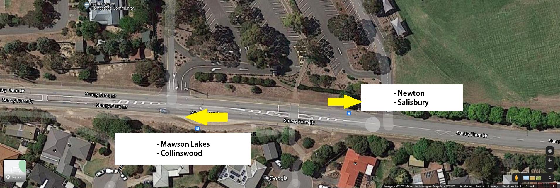 For Newton and Salisbury, your bus stop is on the same side as Gleeson. The buses stop at Pedare first so won’t be there when you arrive.