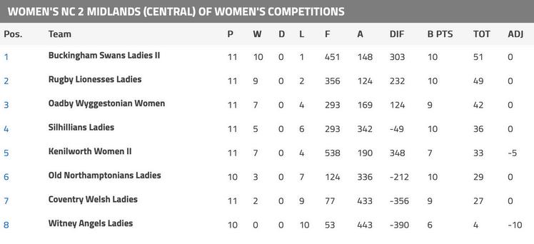 Witney Angels XV VS Old Northamptonians Ladies 2pm KO
