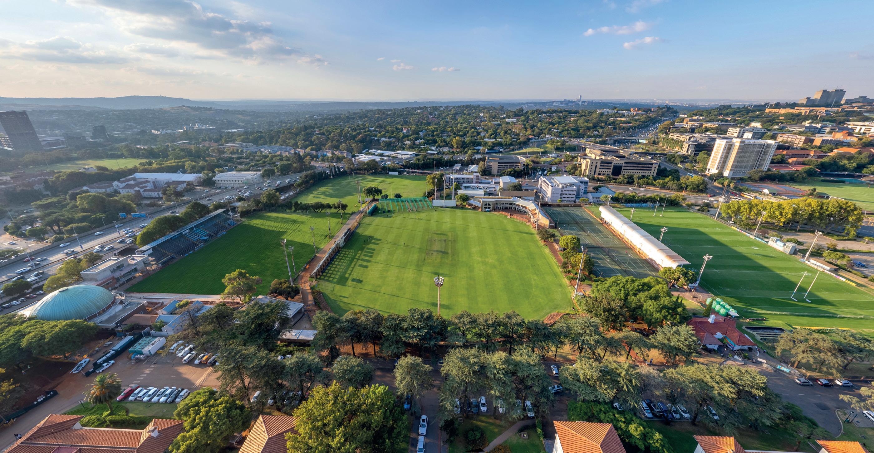 An aerial view of the Wits sports fields and northern suburbs of Johannesburg with its dense canopy of trees. With an estimated 10 million trees, Johannesburg has the largest artificial forest in the southern hemisphere. Click here for virtual tours of Wits’ campuses.