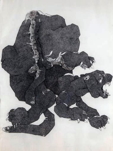 BELOW LEFT: Leonard Matsoso. Cat. 1972. Charcoal, conte, pencil on paper, 138 x 99cm. Wits Art Museum