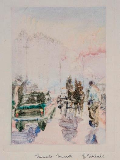 ABOVE: Durant Basi Sihlali. Soweto Sunset. 1982. Monotype on paper. 33 x 25cm. Standard Bank African Art Collection (Wits Art Museum)