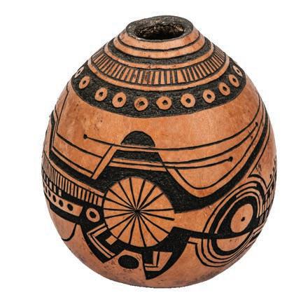 LEFT: Lucky Sibiya. Decorated gourd. 1980s. Relief carved gourd. 20 x diameter 17.2 cm. Standard Bank African Art Collection (Wits Art Museum)
