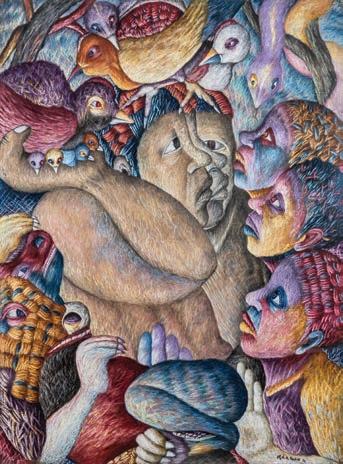 ABOVE RIGHT: Mmakgabo Mmapula Helen Sebidi. Traditionally Mother is Lifesaver. 1993. Pastel on paper. 113.5 x 84 cm. Standard Bank African Art Collection (Wits Art Museum)