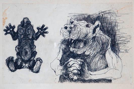 ABOVE RIGHT: Dumile Feni, Untitled (Drawing no 23), (no date), Pencil and blue/black pen on paper, 23.5 x 37.5 cm. Wits Art Museum – Acquired in 1991