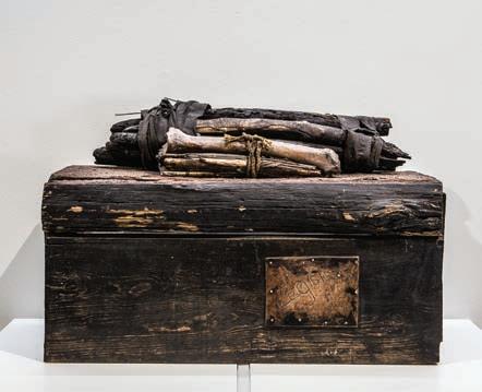 ABOVE LEFT: Lucas Seage. Coffin of the Migrant Worker. 1983. Wood, nails, bones, found materials. 46 x 70.3 x 27.6 cm. Presented in 1995 by Lionel Murcott to Wits Art Museum