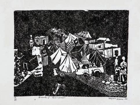 To fully understand the importance of the JAF, it helps to know what restrictions and challenges people faced in South Africa at that time. During the 1980s, when the JAF was established, South Africa was at the height of apartheid. Anyone who was not classified as White had no freedom of movement and very limited opportunity for free speech or freedom of expression. Bongi Dhlomo’s Removals III: Resettlement shows how entire communities were forced to leave their homes and be relocated to designated areas because of apartheid’s racialised urban zoning.