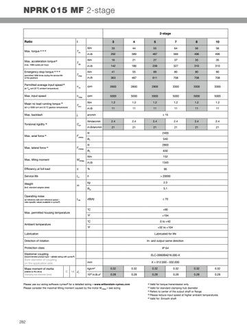 NPRK 015 MF 2-stage 2-stage Ratio Max. torque a)