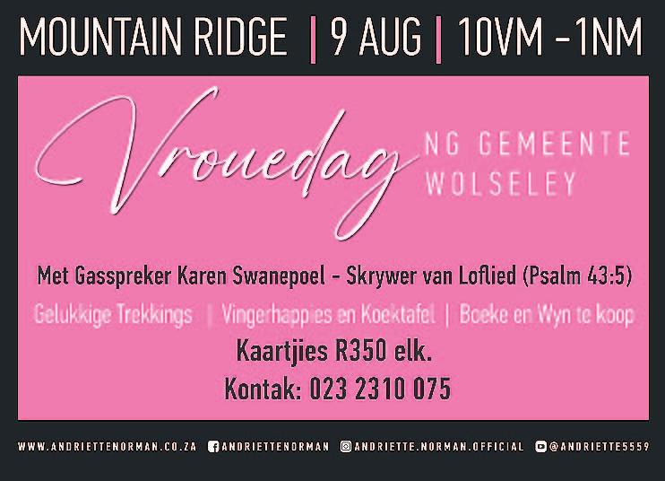 Telephone: (023) 316-2021 Whatsapp: 066-316-3003 Editorial: nuus@witzenbergherald.com Advertising: erika@witzenbergherald.com www.witzenbergherald.com