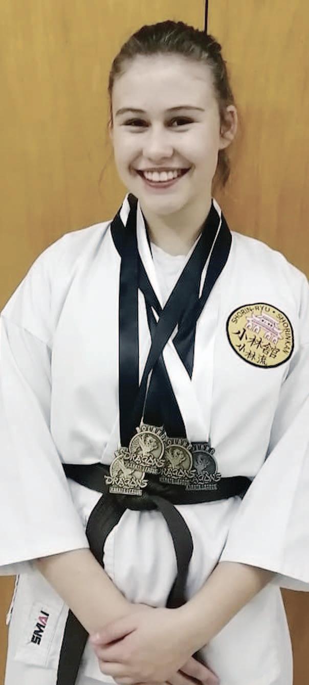 MIA Laubscher het tweede in die Boland Dragonsliga top 10 geëindig met goud in kata, silwer medalje in kumite-Silwer, goud in long weapon en goud in short weapon.