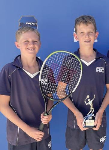VIER tennisspelers van Laerskool F.D. Conradie het verlede naweek aan die ProKennex tennistoernooi op Stellenbosch deelgeneem en skitterend gevaar. BO: Daniël Wolfaardt (o/11 A- wen 5 uit 7 wedstryde en eindig sesde in sy groep) en Adriaan Wolfaardt (o/13A - wen al 7 sy wedstryde en eindig eerste in sy groep, hy ontvang ook die beker vir die beste o/13 seuns tennisspeler). ONDER: Herchell Shiba (o/ 13B - wen al 7 sy wedstryde en eindig eerste in sy groep) en Ava Hendrikse (o/10Bwen al 7 haar wedstryde en eindig eerste in haar groep).