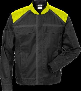 Mekanisk stretch-kvalitet / Ståkrage / Mørkegrå, reflektive detaljer / Hel glidelås i front med skjult trykknapp / To brystlommer med klaff og skjult trykknapp / D-ring under framlomme / En innerlomme med knapp / To framlommer med glidelås / Fire blyantlommer på venstre erme / En lomme med trykknapp på høyre erme / Regulèrbar midje og mansjetter / CORDURA®-forsterkede albuer og bakside av ermene / Forlenget rygg / Vaskeritestet i henhold til ISO 15797 / Med EPD (miljøproduktdekarasjon) - registreringsnummer 1534 på environdec.com / ØKOTEX®-sertifisert / RFID chip kan bestilles som VAS.