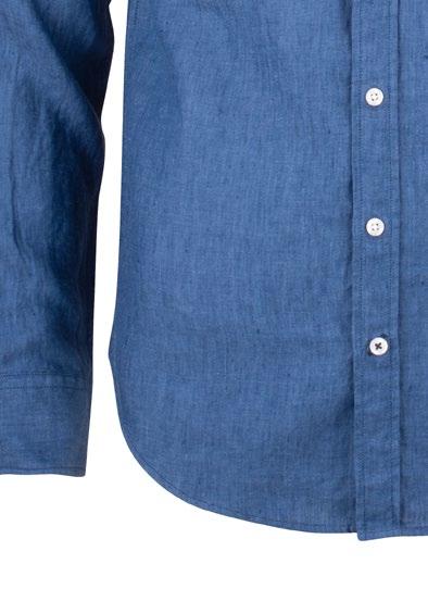 Denim shirt in soft and durable indigo dyed fabric. Tailored fit with a current shaped collar, this piece of garment defines the modern dress code. With its Western roots Ellensburg features original denim shirt details and contemporary design. Men’s shirt with chest pocket on left side.