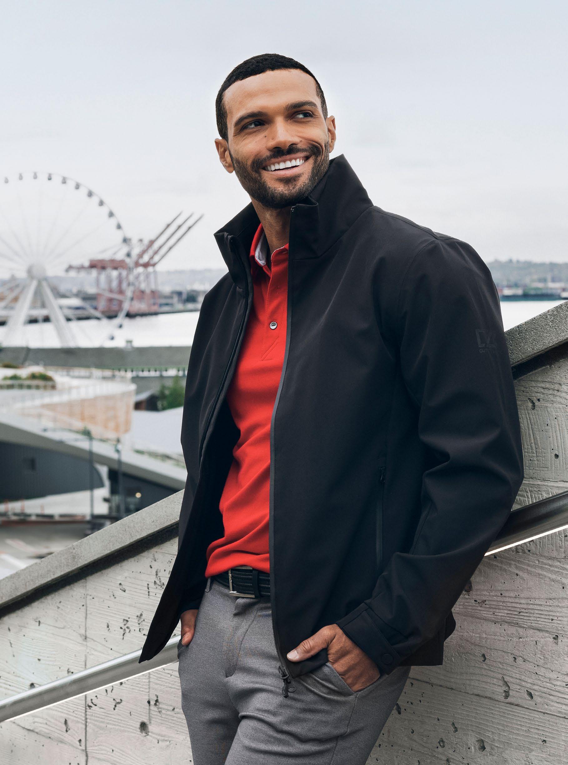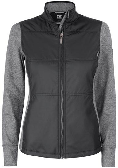 Find your way to this new, sharp-looking outerwear piece and you won’t be disappointed. While the eye-catching melange side panels command attention, the soft stretchy material won’t inhibit your movements. CB WeatherTec™ fabrication provides resistance to whatever inclement weather you encounter on your journey to work or on the golf course. Reflective print on the back panels helps keep you safe in low-light conditions. YKK® zippers.