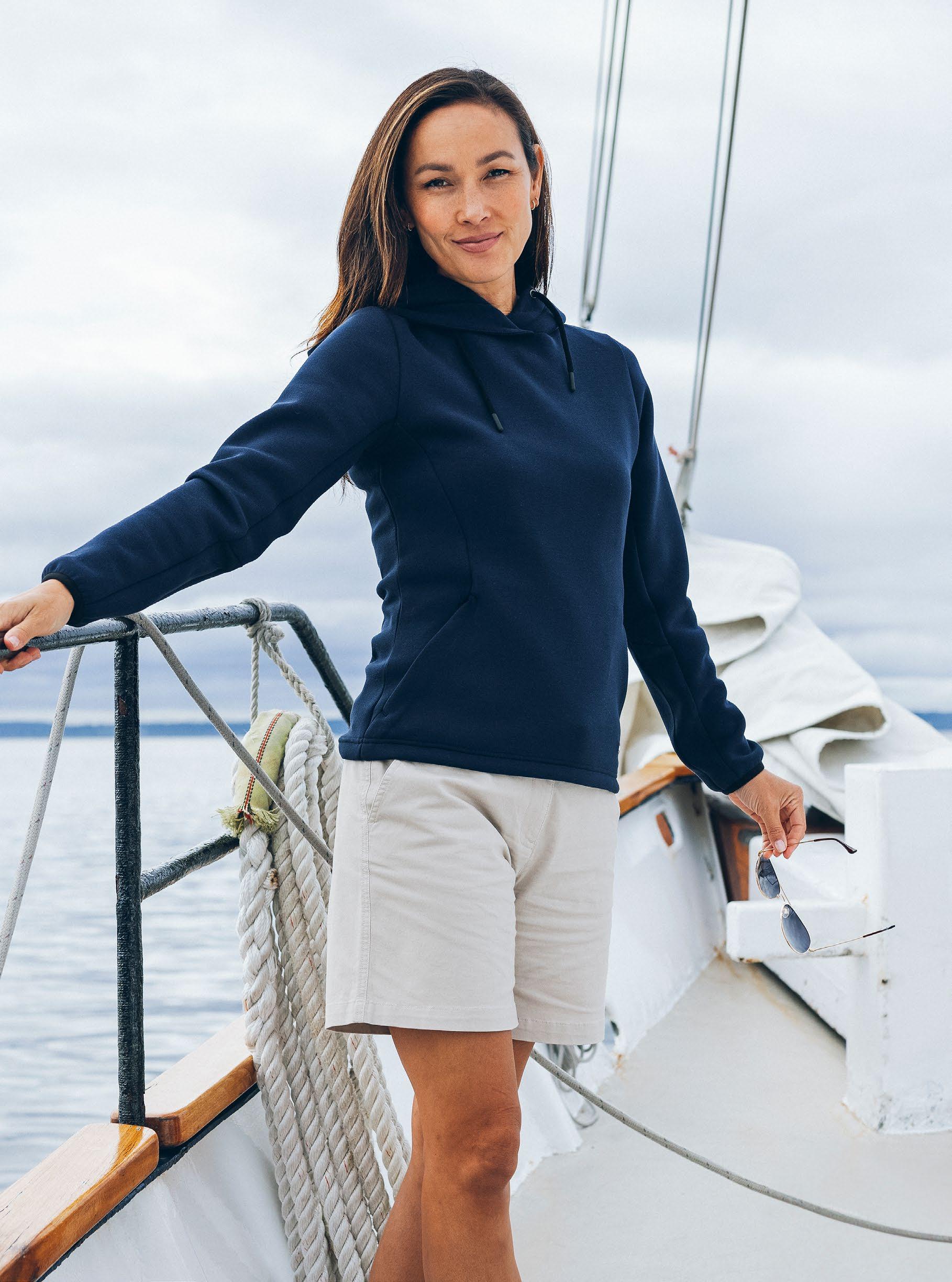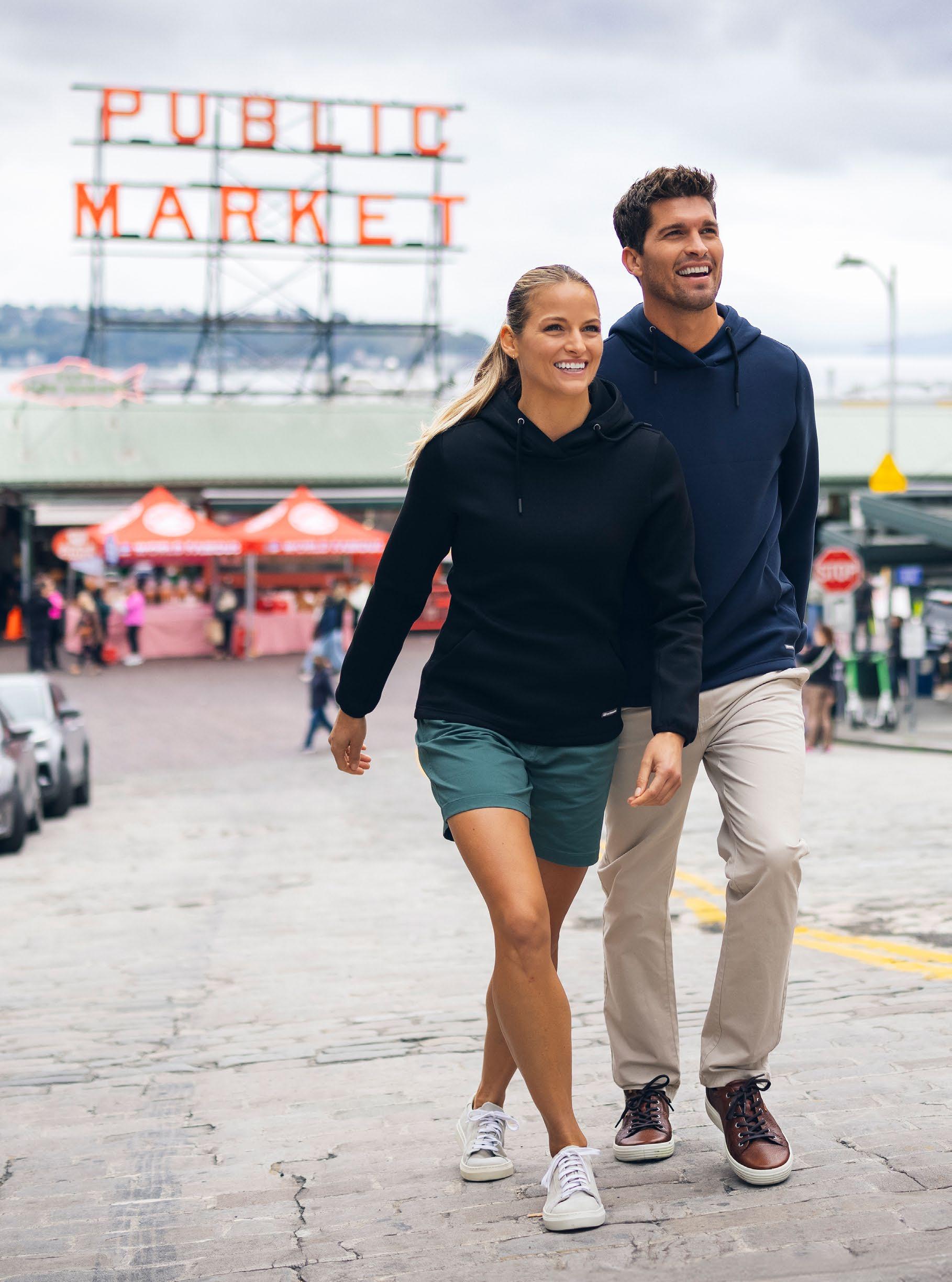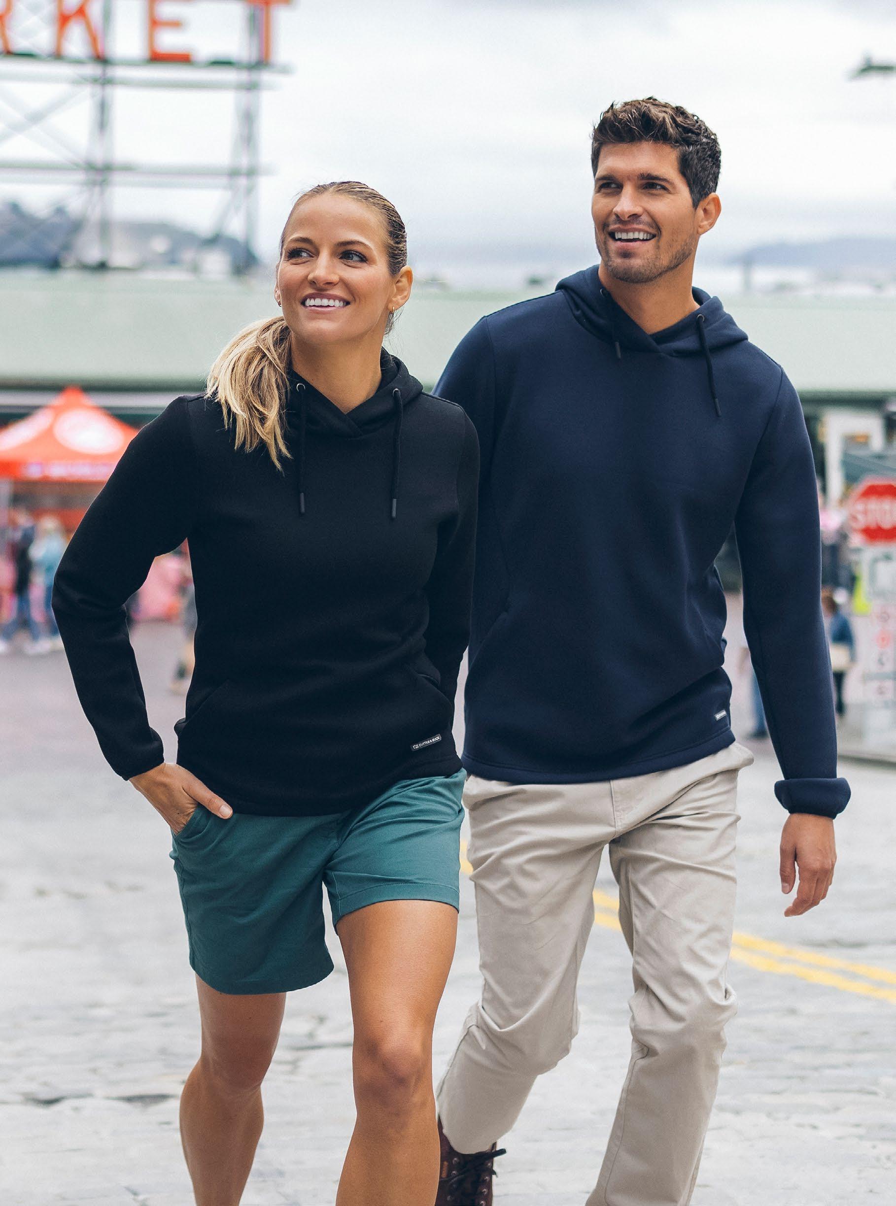 Pemberton is our iconic hood in double-knit lightweight fabric with up to 70% recycled polyester. The hood collar is high to protect you from cold winds and the hood is easy to adjust with the drawcords. Equipped with two front zipped pockets and decorated with Cutter & Buck logo embroidery along the hood edge.