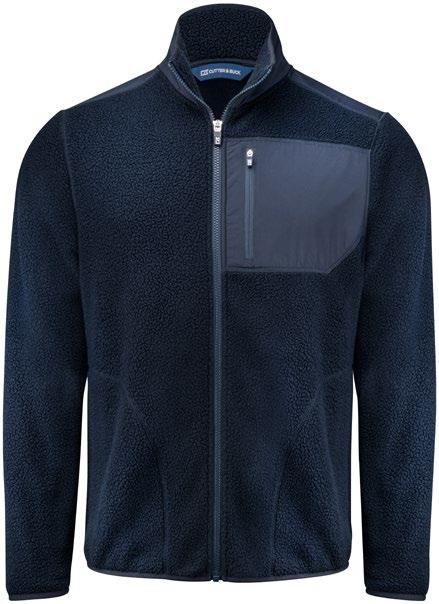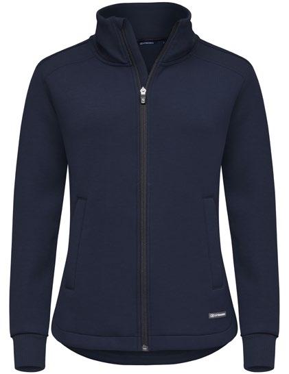 Pemberton Full Zip, our iconic cardigan, crafted with stretchy double-knit lightweight fabric containing up to 70% recycled polyester, rayon, and elastane. Perfect for year-round wear, it includes zip pockets, rib details, and Cutter & Buck 3D logo embroidery. Women's version features a curved hem and slightly longer back.