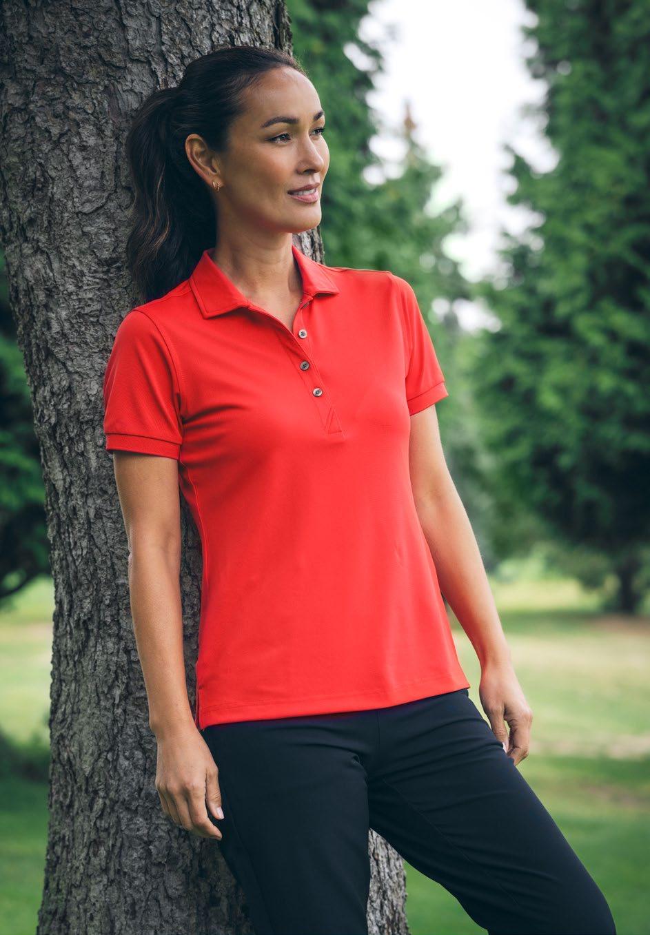 A classic polo with UV protection, designed for ultimate comfort and ease of movement thanks to its sporty cut. Kelowna Polo feels soft against the skin and efficiently wicks away perspiration. Features a ribbed collar, 3 buttons, and our signature printed logo at the back neck. The fabric will gradually be replaced by recycled polyester.