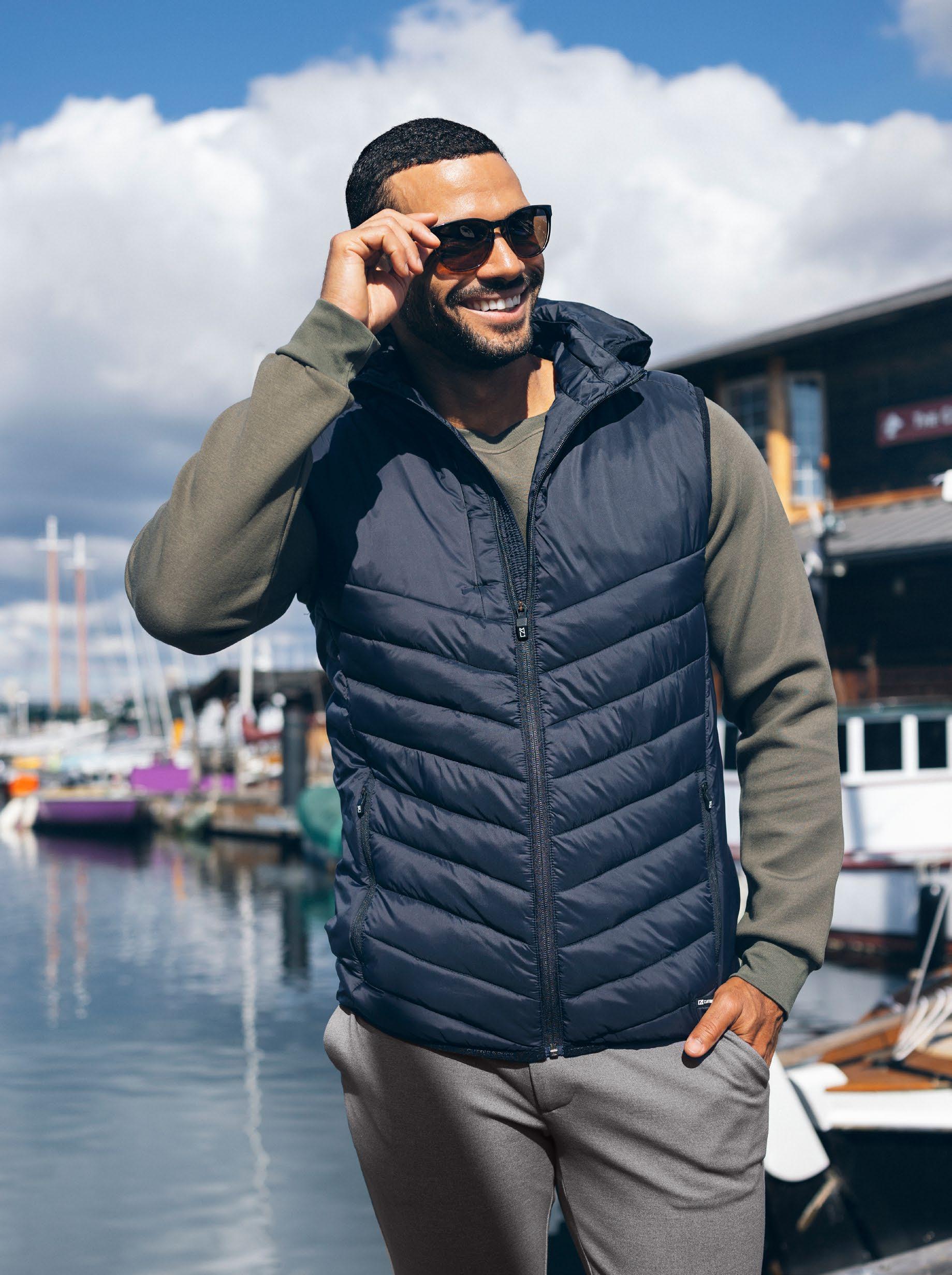 Shelton is the ultimate business jacket for everyday use and ideal for city adventures. Wear both layers alone or, combine them for maximum support. Minimalistic design with a lot of surface to add decoration. Cuffs and front hand pockets with easy-to-open/close press buttons. The inside vest can be zipped out from the jacket and is sewn with vertical quilt lines. YKK® vislon zippers at center front jacket and vest.