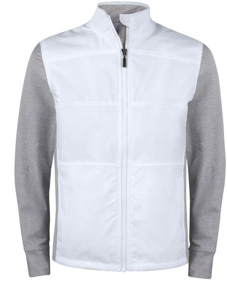 This jacket represents the future of sweatshirt-meets-outerwear and is the perfect crossing from sportswear to casual fashion. Breathable and moisture-wicking. Sleeves and back in a lightweight soft fabric incorporated into a woven west that protects you from light rains. Zip pockets at front.