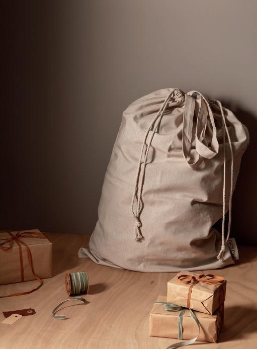 Gør gaveindpakningen til en oplevelse med en tekstilpose fremstillet i 100% genanvendt bomuld. En elegant detalje og et fint alternativ til gavepapir og bånd – efterfølgende kan posen få nyt liv som bærenet, vasketøjskurv eller noget helt tredje.