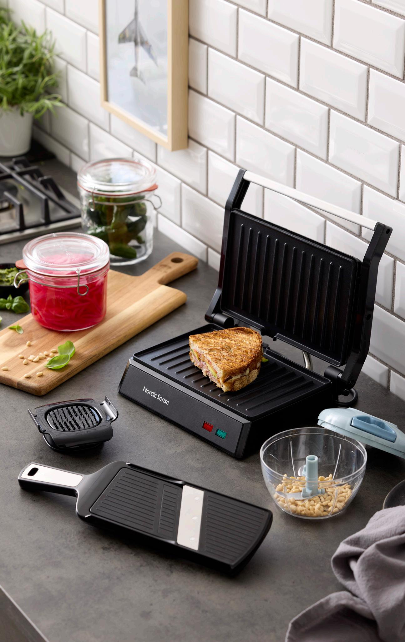 B 36320 NORDIC SENSE MINIHAKKER Kutt grønnsaker, hakk nøtter eller lag deilige dressinger raskt og enkelt. Utstyrt med to skarpe knivblader, avtakbar bolle med helletut og lokk med doseringsåpning, som gjør det enkelt å tilsette flytende ingredienser – for eksempel olje – underveis. 0,5 liter, 250 watt.