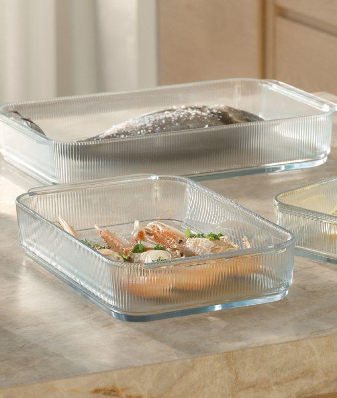 Elegante og tidløse ovnsformer. Både paiformene og ovnsformene supplerer hverandre og er perfekt for tilbereding og servering med stil. Ribbet glasskonstruksjon som gir et raffinert preg til bordet. Slitesterk og varmebestandig, ideell for både ovn og servering.
