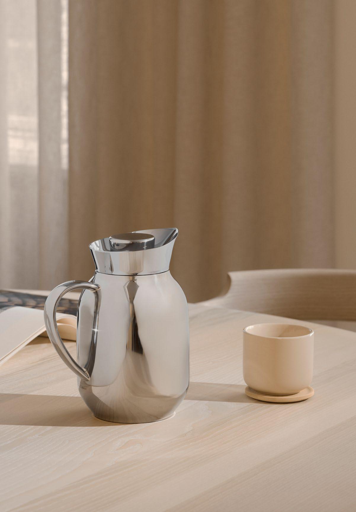 Steltons Amphora-kanne rustfritt stål er designet for å imponere med sin blanding av eleganse og funksjonalitet. Denne moderne kannen er ikke bare visuelt tiltalende, men også praktisk og holdbar med sin rustfrie stålkonstruksjon, som med unntak av lokket tåler den også industrielle oppvaskmaskinerlokket. Med sin isolerende stålinnsats holder Holmbäcks termoskanne kaffen og teen din varm timevis, samtidig som den tilfører din daglige drikkeopplevelse tidløs eleganse.
