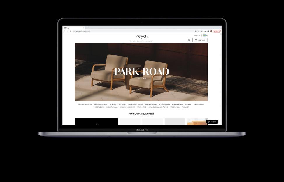 På nettstedet www.getmygift.com kan den heldige mottakeren velge en gave fra et nøye utvalgt sortiment. Med den unike koden på gavekortet vises det utvalget som tilsvarer verdien av gavekortet mottakeren har fått. Et Veya-gavekort gir mottakeren muligheten til å velge 1 gave fra det utvalgte sortimentet.